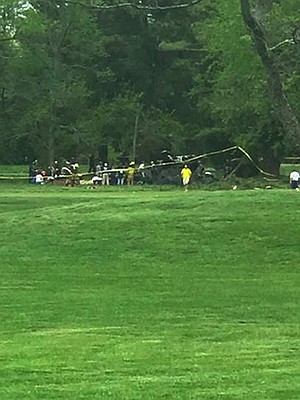One witness, Garrett Bowles, told CNN he thinks the helicopter hit some trees as it went down. One other helicopter was at the scene when it crashed, Bowles told CNN.