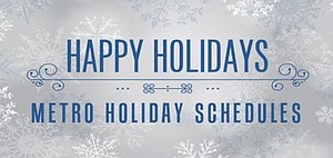 In observance of the Christmas and New Year’s holidays, METRO will operate on the following schedule: