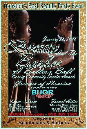 Sunday, January 28, 2018 will be a night to party & acknowledgment contributions that Houston’s Beauty Fashion Industry has made (is making) to the Hurricane Harvey Relief & to the countless endeavors that are done to assist Beauty Colleagues & Beyond.The Beauty & the Barber Ball—Beauty Community Service Awards is our way of expressing gratitude and support to some of these impactful community campaigns.