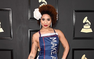 The 25-year-old artist, who describes herself as a singer, vegan and bodybuilder on Instagram used her red carpet appearance on Sunday to make a political statement.