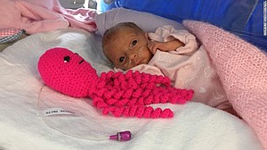 (CNN) -- Inside neonatal intensive care unit (NICU) incubators at one United Kingdom hospital, premature babies have an unlikely companion -- colorful, crocheted octopi.