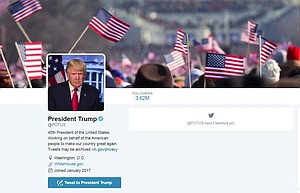 The Twitter header image on the unveiled account shows a crowd at an inauguration waving American flags.