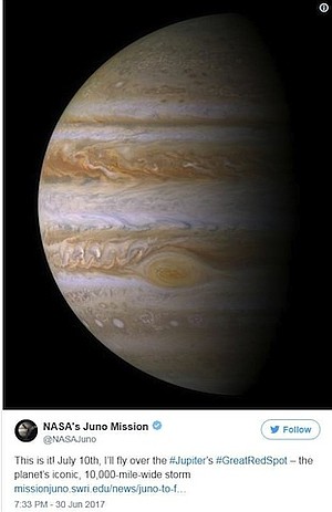 "This monumental storm has raged on the solar system's biggest planet for centuries. Now, Juno and her cloud-penetrating science instruments will dive in to see how deep the roots of this storm go, and help us understand how this giant storm works and what makes it so special."