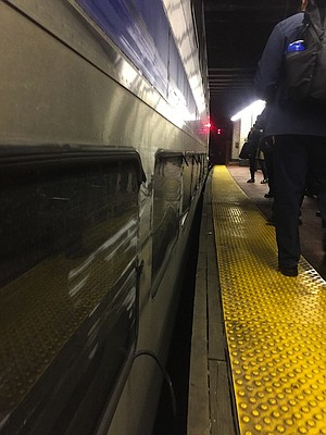 "As we were pulling into the station we heard a loud noise -- it was like metal crushing," she said in an email. "It lasted for about 15 seconds. It was very loud and rocked the train. People were already standing up preparing to disembark the train but no one in my car fell.