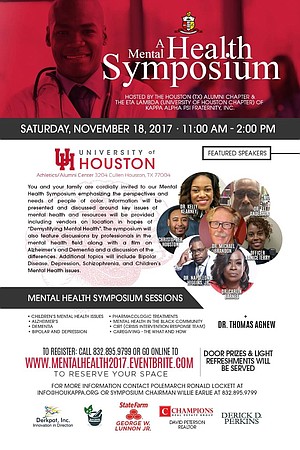 To register: Call 832.895.9799 or go online to www.mentalhealth2017.eventbrite.com . For information contact info@houkappa.org.