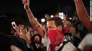 CNN affiliate the St. Louis Post-Dispatch said police on Sunday moved to box in "about 100 people at a busy downtown intersection and arrest them for failing to disperse."