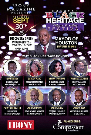 This year’s Black Heritage Festival other honorees include, Houston's Mayor, Sylvester Turner, City Of Houston Press Secretary, Darian Ward, Fox 26 News Reporter, Isiah Carey, VP of Ebony, Williard Jackson and others.