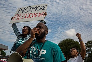 Several from the Texas Organizing Project were calling for justice at the intersection where Danny Ray Thomas lost his life. They were calling for “no more bloodshed.” Others handed out flyers for a town hall to discuss potential policy changes with local politicians and officials stemming from the latest officer-involved shooting of an unarmed black man. U.S. Rep. Sheila Jackson Lee and state Rep. Jarvis Johnson, both Democrats from Houston, joined Harris County Sheriff Ed Gonzalez and representatives from the county’s district attorney’s office and the Houston Police Department at a community meeting. Last month, Harris County Sheriff’s deputy Cameron Brewer, who is also black, shot and killed Thomas about 20 seconds after he saw Thomas and another man struggling in a busy intersection. The shooting garnered national attention. In 2017, Texas law enforcement officers injured or killed 158 people in shootings, according to data from the attorney general's office. Gonzalez said after Thomas’ shooting that he was concerned by Brewer’s use of deadly force since the deputy was armed with a Taser as well.
