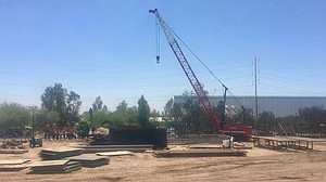 Thirty-foot steel bollard fencing goes up in Calexico, California. The replacement project was authorized in 2017 government funding by Congress, and it takes the place of fencing that pales in comparison with the new structure.