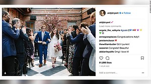Bryant posted a picture of herself with O'Malley, captured as they made their way down the aisle after exchanging vows, along with a heart emoji caption.
