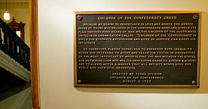 A Dallas man angry over the removal of Confederate monuments has pledged to call 100,000 Texas households in the next few weeks urging them to contact their elected officials. Dallas businessman and GOP donor Christopher Ekstrom said the Conservative Response Team, a politically active nonprofit he leads, plans to make the robocalls before Jan. 12. The calls will urge Republicans to call Rep. Dennis Bonnen, the Angleton Republican assumed to become the next speaker of the Texas House, who recently from the state Capitol. Ekstrom said his group has already made 8,000 calls in Bonnen's district on the issue. That could not immediately be verified, and he declined to say who was funding the campaign. Abbott's office did not responded to requests for comment. A representative with Bonnen's office confirmed the office had received a couple of hundred calls. The plaque in question hangs on a back wall of the rotunda in the state Capitol building.