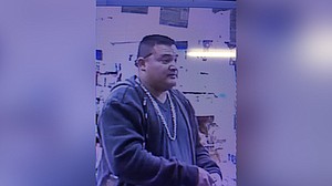 The suspect -- who surveillance images show is a heavyset man with dark, closely cropped hair -- took off in a silver or gray extended-cab Dodge Ram 1500 pickup, police said. In photos provided by police, he is wearing a zip-up hoodie with an Ecko logo on the sleeve and a thick silver chain around his neck.