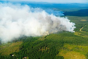 Footage posted Wednesday on Twitter by the Italian fire service from one of the two Canadair CL-415 aircraft showed smoke rising from a large area of forest. The plane was on its first mission, flying over Lillhardal, about 450 kilometers (280 miles) north of Stockholm, it said.