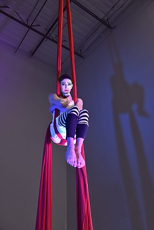 Every day I'll introduce a new cast member. Carlos Perez is our Friday pick to get your weekend going! In 2017, I featured Carlos as the "Sad Little Clown," in, "Not Asking For It Part 2," a dark look how boys too are targeted for rape, but often overlooked in the loud din of the #metoo Movement. Last year, I introduced Carlos to aerial dance and he has taken to it like a fish in water! Come see Carlos fly high in Never Again!