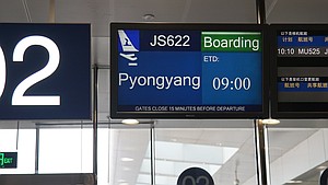 In Wonsan, the CNN team landed at a newly renovated airport, bedecked in blue and red, the colors of the North Korean flag.
