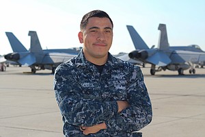Petty Officer 3rd Class Adrian Huerta works as an aviation ordnanceman and operates out of Naval Air Station Lemoore, California.