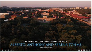 The Tohmes didn't expect they would all get into Rice. When they did, Alberto, Anthony and Serena considered themselves fortunate to be able to attend the same school and still have their own individual experiences.