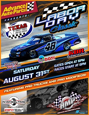 See all the action at 11620 North Lake Houston Parkway on Saturday, August 31 - Gates open at 5pm; Heat races kick off at 6pm, and Features start at 7pm.