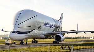 You won't be able to ride in it, though. This is a super-transporter cargo plane, designed by Airbus to fly its aircraft components between European production sites and its final assembly lines in Toulouse, Hamburg and Tianjin.