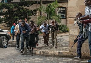 Anti-terror units, other law enforcement agencies and ambulances rushed to the scene on Riverside Drive in Nairobi's Westlands neighborhood as people with bloodied clothes could be seen fleeing the complex. Nearby, students from the University of Nairobi's Chiromo campus were evacuated onto the street.