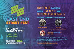 According to Veronica Chapa Gorczynski, President of the East End District, “the 2019 East End Street Fest will be eight years of celebration focused on bringing the community together and showcasing the arts, culture, and commerce of the East End. Whether you're enjoying delicious fare from our Cultural Food Kitchen, shopping for the perfect handmade bag, or dancing in the street to Grammy Winning music - it will be amazing and admission will be free!”