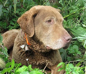 Train, a Chesapeake Bay retriever, sniffs out the scat, or poop, of elusive wild animals like jaguars and oncillas in the name of conservation.