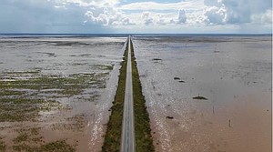 Instead, the huge swathes of inland water that are visible from space greet motorists.