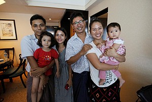 Both men have families with young children. Kyaw Soe Oo has a three-year-old daughter, while Wa Lone's daughter was born after his arrest. On Tuesday, the two men were finally reunited with their wives and families in Yangon. In emotional scenes, Wa Lone was pictured holding his young daughter for the first time outside of police custody.