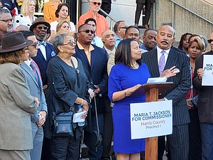 Standing on the steps of the Harris County Courthouse and surrounded by more than 60 friends, family and supporters, Judge Maria T. Jackson today kicked off her campaign to be the next commissioner for Harris County Precinct 1.