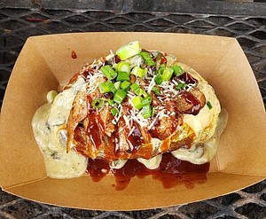This week, April 14-19, HSP chefs are introducing the BBQ Swamp Potato; a giant baked potato topped with vegan Alfredo sauce, spinach, Portabella mushrooms, shrimp, vegan Parmesan and your choice of vegan beef or smoked links!