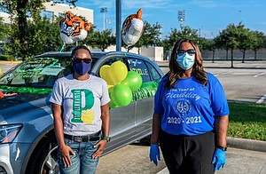 Cars covered with colorful banners and balloons lined up to participate in the district’s annual Welcome Back event this week, which took on a different format from previous years due to COVID-19 precautions.