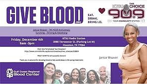 As a result of her journey, Janice has committed to helping others by increasing the overall awareness about this rarely known TTP disease. She immediately began hosting an annual blood drive for the community which is scheduled Friday. Mayor Sylvester Turner along with Houston “first responders”, who unselfishly put themselves in harm’s way to protect and help others, will be honored during the annual blood drive for “First Responders Day of Appreciation” @ 11:00 a.m. The Gulf Coast Regional Blood Center will conduct the blood drive.