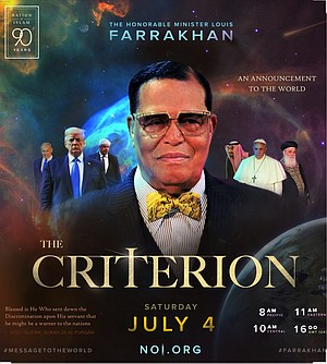 Minister Farrakhan’s message, “The Criterion,” will be delivered on Independence Day, which also marks the 90th anniversary of the existence of the Nation of Islam in America. It will be his first public address since February.