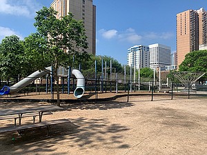 The park is still open as part of the Stay Home/Work Safe initiative, however the playground equipment and furniture have been fenced off. Please continue to practice social distancing with at least six feet between you and other park patrons.