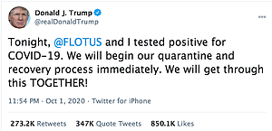This evening I received confirmation that both President Trump and First Lady Melania Trump have tested positive for the SARS-CoV-2 virus.