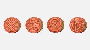 Taking design cues from the 16-track album, the vanilla-flavored cookies are bright pink with green crème filling and feature various embossments inspired by the album.