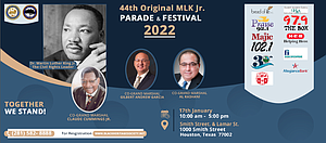 The Black Heritage Society in partnership with the City of Houston is having its 44th Annual MLK Original Parade & Festivities. The MLK Holiday festivities is three days which includes the MLK Parade and Festival, Black Heritage Society Recognition and Hall of Fame Induction Banquet, MLK Day of Service, and MLK Gospel Extravaganza.
