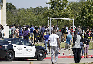 Arlington, with a population of about 400,000, is a major suburb of the Dallas-Fort Worth area. The city is home to attractions including the Six Flags Over Texas amusement park and the stadiums where the NFL’s Dallas Cowboys and MLB’s Texas Rangers play. Authorities closed a section of a tollway in Arlington near Timberview as dozens of school buses picked up students to reunite them with their parents. Some waited for hours to collect their children as traffic in the area crawled.