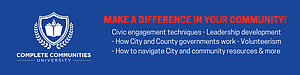 The CCU program educates emerging leaders on how to effectively engage residents in civic activities to vitalize and empower neighborhoods. Course topics include leadership development through civic engagement, volunteerism, voter education, how city and county governments function and impact neighborhoods, and how to effectively navigate City services and local resources. Course participants are challenged to devise civic engagement strategies based on the unique character, interests and needs of their neighborhoods.