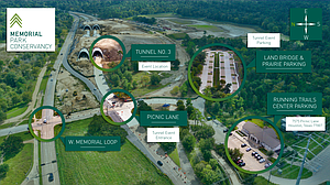 Beginning in March 2022, vehicular traffic will traverse a new alignment of Memorial Drive via tunnels through the Land Bridge – two tunnels below each of the hills (one for each direction of travel). The tunnel openings will be phased, with the eastbound tunnels opening to traffic first, followed by the westbound tunnels. All tunnels will be opened for traffic in April. Together, the Land Bridge and Prairie comprise green infrastructure that will introduce a new 100-acre area for Houstonians to explore and enjoy, provide a safe crossing for Park users, reconnect wildlife corridors and help manage stormwater for the benefit of the city.
