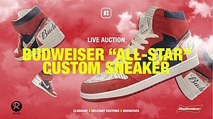 Relevant Customs, an underground sneaker company with deep ties to the celebrity world, is putting up the "artist proof" pair of the AJ1 Budweiser "All-Star" sneaker for auction with ClubRare. With only 23 pairs ever created, the custom sneaker was gifted to VIPs of the 2019 NBA All-Star Game, such as Big Boi and Kevin Hart, and never went to retail.