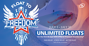 In celebration of July and recognition of the United States’ independence, True REST Float Spa is offering a unique flotation therapy opportunity for its guests—new and current members can Float to Freedom with 30 days of unlimited float therapy. The unlimited float therapy is available for first time members or for current members who upgrade their floating membership plan to plus or premium. Members have the freedom to experience all the incredible benefits flotation therapy has to offer now until July 31.