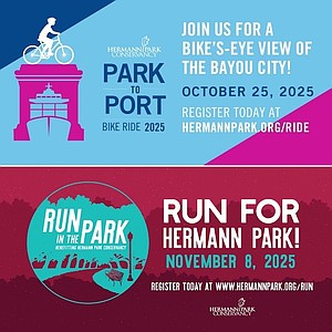 Now in its 11th year, the Park to Port Bike Ride, presented by Port Houston, features a 20-mile round-trip course from Hermann Park to Mason Park near the Port of Houston and back along the scenic Brays Bayou Greenway Trail. The ride concludes with a post-event celebration at the Bill Coats Bridge in Hermann Park, including refreshments, music, and activities from community partners. Helmets are required, and advance registration is recommended due to limited space.