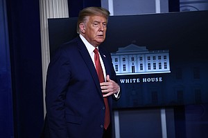 Trump made a false claim in the opening minutes of the briefing, wrongly saying it is easy for foreign countries to interfere with mail-in voting. After he was taken out of the room because of a Secret Service shooting near the White House, he returned to make a whole bunch more.