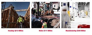 Biden wants to put $300 billion toward boost- ing manufacturing.