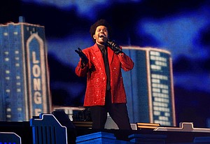 The Grammy-winning singer took to the stage for the Pepsi Super Bowl LV halftime performance with plenty of pyrotechnics, lights and men dressed like The Weeknd in all black with red jackets and bandaged faces.