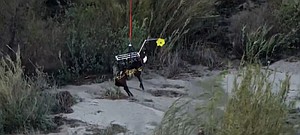A horse was airlifted to safety nearly 24 hours after getting stuck in the Santa Ana River over the weekend.