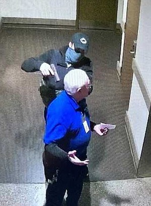 Investigators said after taking the money, he went over to the cashiers in another area of the bank section and, holding them at gunpoint, started grabbing money from drawers and putting it into a bag.