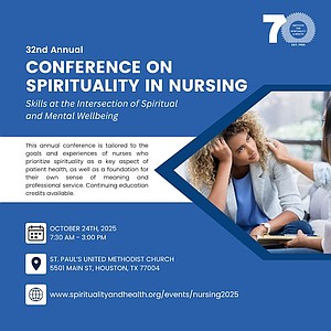 The Institute for Spirituality and Health at the Texas Medical Center will host the 32nd Annual Spirituality in Nursing Conference (SiNC) on October 24, 2025, at St. Paul’s United Methodist Church in Houston. Early Bird registration is available through September 30.