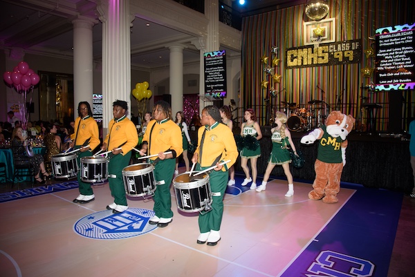 Worthing High School DrumlineUnder the creative direction of Bergner & Johnson, The Corinthian was transformed into CMHS, a high school gym straight out of a 90s teen movie. The Worthing High School drumline, cheerleaders, and a Bulldogs mascot set the tone for a spirited evening, while guests channeled iconic looks from “Clueless” and “Romy and Michele’s High School Reunion.” A photo booth complete with a prom-inspired backdrop captured all the throwback moments.